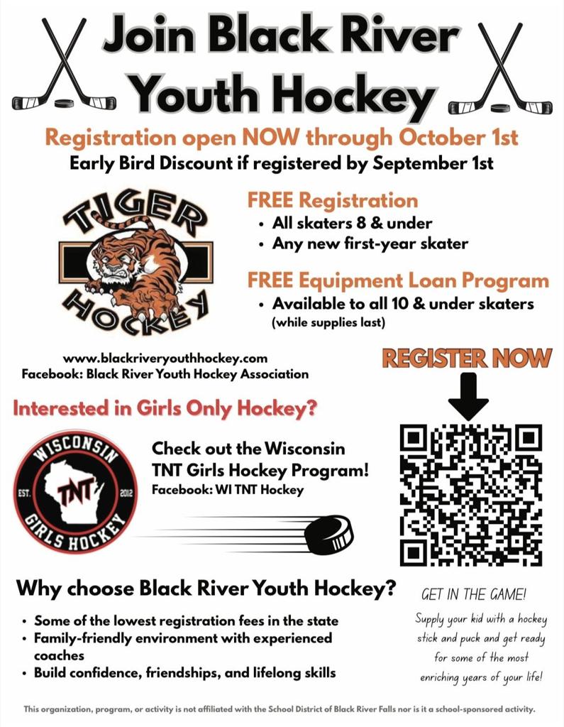 Mite Registration & First Year Skater is FREE!! There will be no charge from the Black River Youth Hockey Association.
